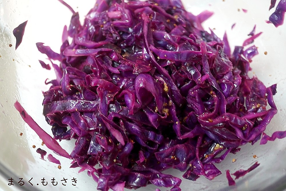そして紫キャベツ!この色がとても新鮮だ、なんだかテンション上がるわ~(笑)