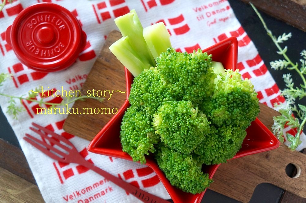 あくまで我が家の好きな食感なので、お好みの時間で調整してください。ブロッコリーのカットした大きさにもより変わるとは思いますが、初めは湯がいた後、茎部分を噛んでみて確かめてみると、自分のベストの食感がわかります
