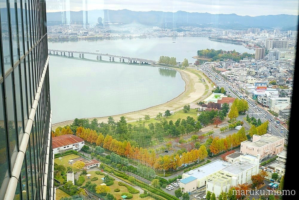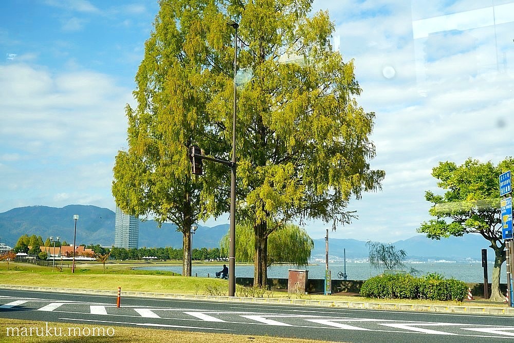 写真の木の左端に泊まった、びわ湖大津プリンスホテルの1部が写っていますw