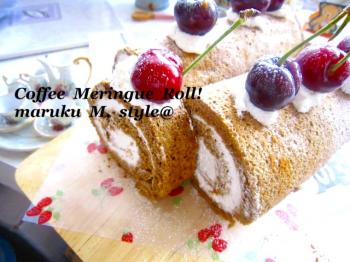 ふわふわ・メレンゲのコーヒーロール! たまっていた卵白で、メレンゲのロールを作ってみました! 大好きなコーヒー味のメレンゲ*ロール! ・・・卵黄が入らないし油もめっちゃ少しだから、とっても低カロリー! ラム酒の香りが異国の夢の中へと誘ってくれる・・・・ ...