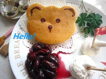 *アメリカン・チェリー* Hello! こちらを見ているクマさんのホットケーキに添えたのは、アメリカンチェリー! 少し赤紫のアメリカンチェリーでお菓子に添えるコンフィチュールを作ってみました。 出掛けた先の朝市風な場所でで売られていた、 アメリカンチェ ...