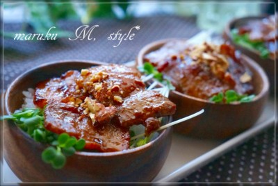 エスニックな豚肉丼 最近、ご飯ものにはまっているなぁ~私(笑) 今回と後1回もご飯ものが待機してます。 ^^ また豚バラ肉の厚切り100g97円の値下げ品を買うのでさらにお安い♪ これ・・・・エスニックなピリ辛味!焼くときにカリカリに焼くので、かなりの脂 ...