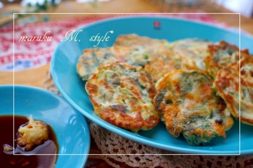 カルシウムたっぷり♪小松菜とクリームチーズのチヂミ&雨