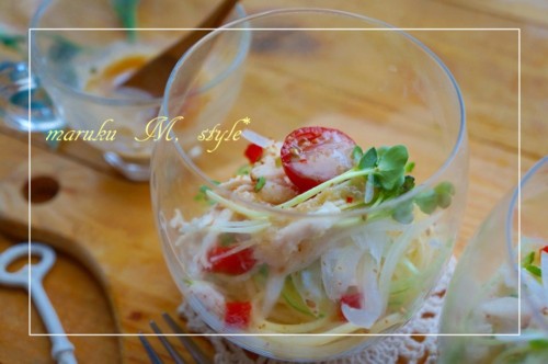 まぜてマジック♪蒸し鶏のグラスミニパスタ中華豆乳ソース&ハウス食品リーフレット