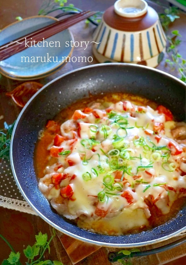 フライパンでパパっと簡単♪豚肉とトマトのチーズ焼き