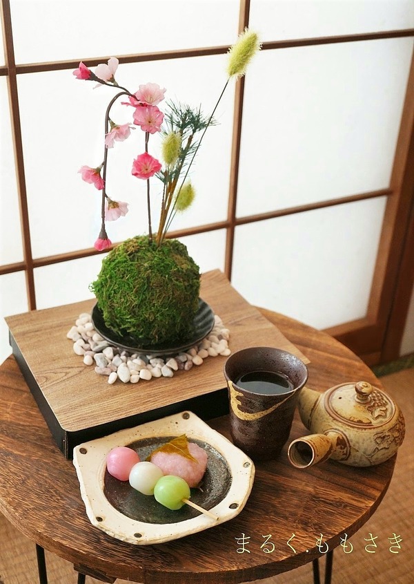 100均材料で簡単!『しだれ桜の苔玉作り』でお部屋に春が来ました♪
