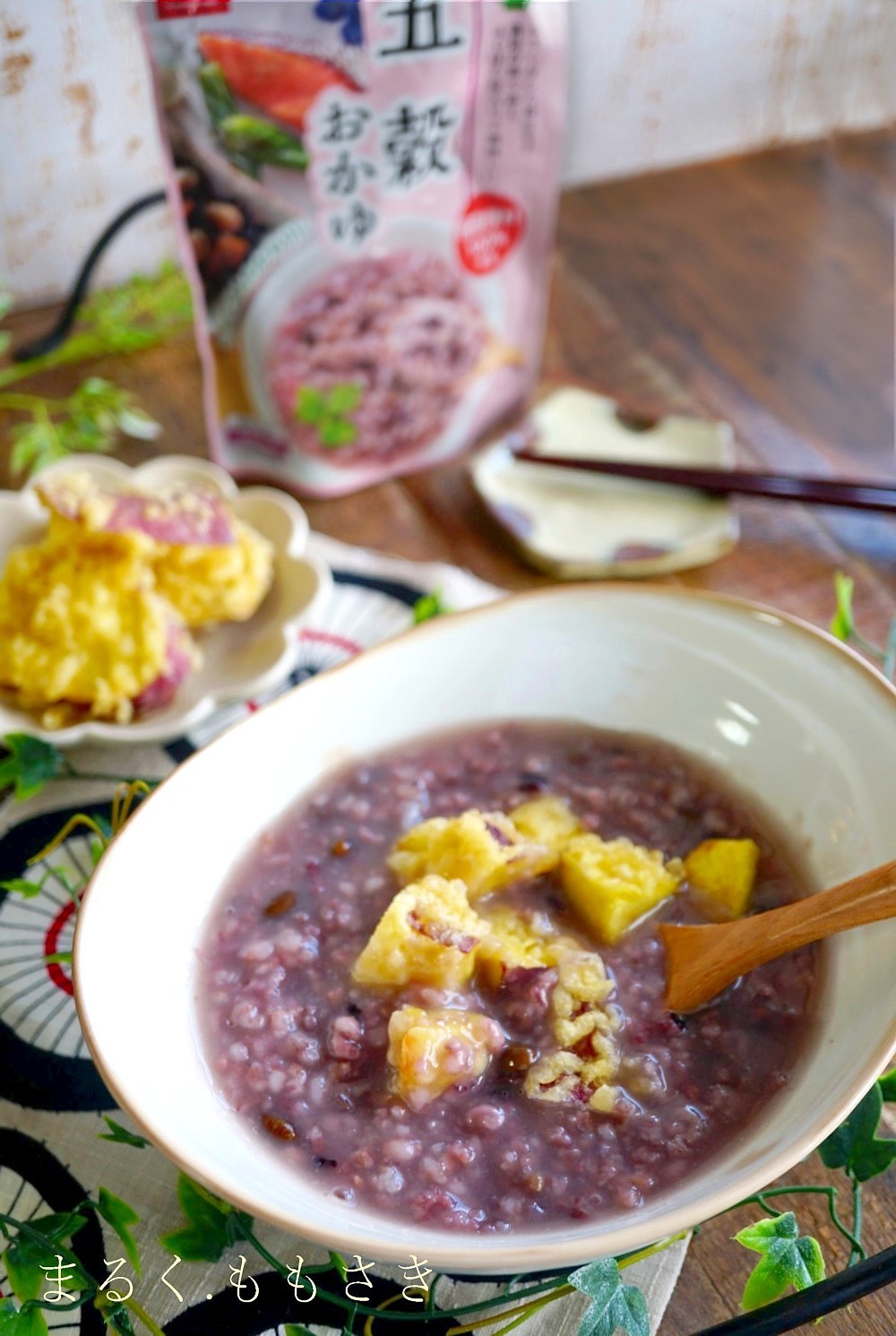 この『五穀おかゆ』を見た時に、これにさつま芋の天ぷらをした時に、入れると簡単に芋粥風になるなと思いました。期日に間に合わなかったので、出していませんが