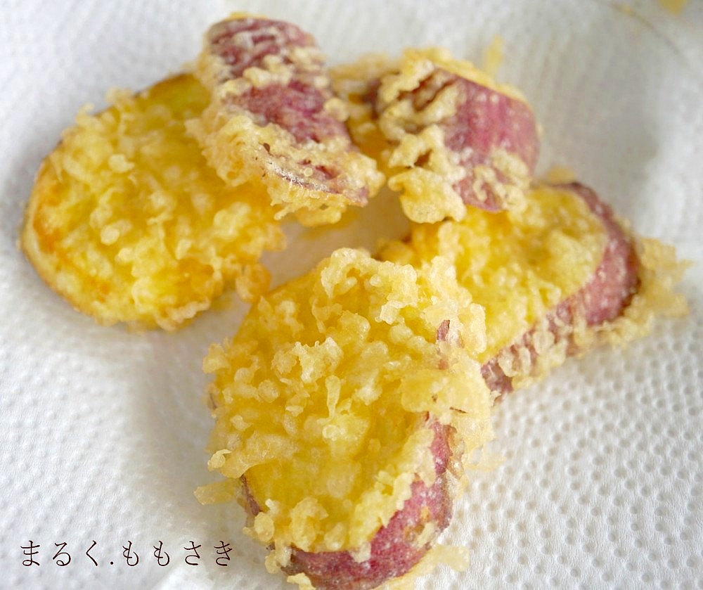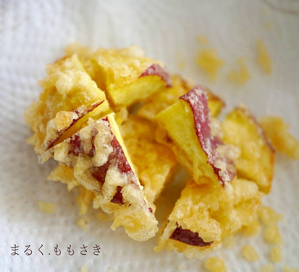 ・・・ふと思いましたが私は家で揚げますが、スーパーのお惣菜コーナーのさつま芋の天ぷらを使うのもありですね