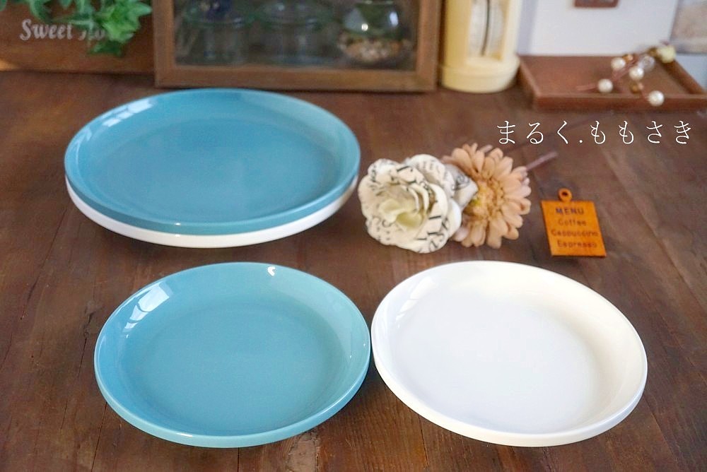 こちら名前が『綺麗にスタッキングできるお皿』と書いてあるのも面白い。シンプルなのも使いやすい!そしてお値段以上なのでお安い♪色は4色ありました。ホワイト・ミドルターコイズブルー・ブラウン・グレー