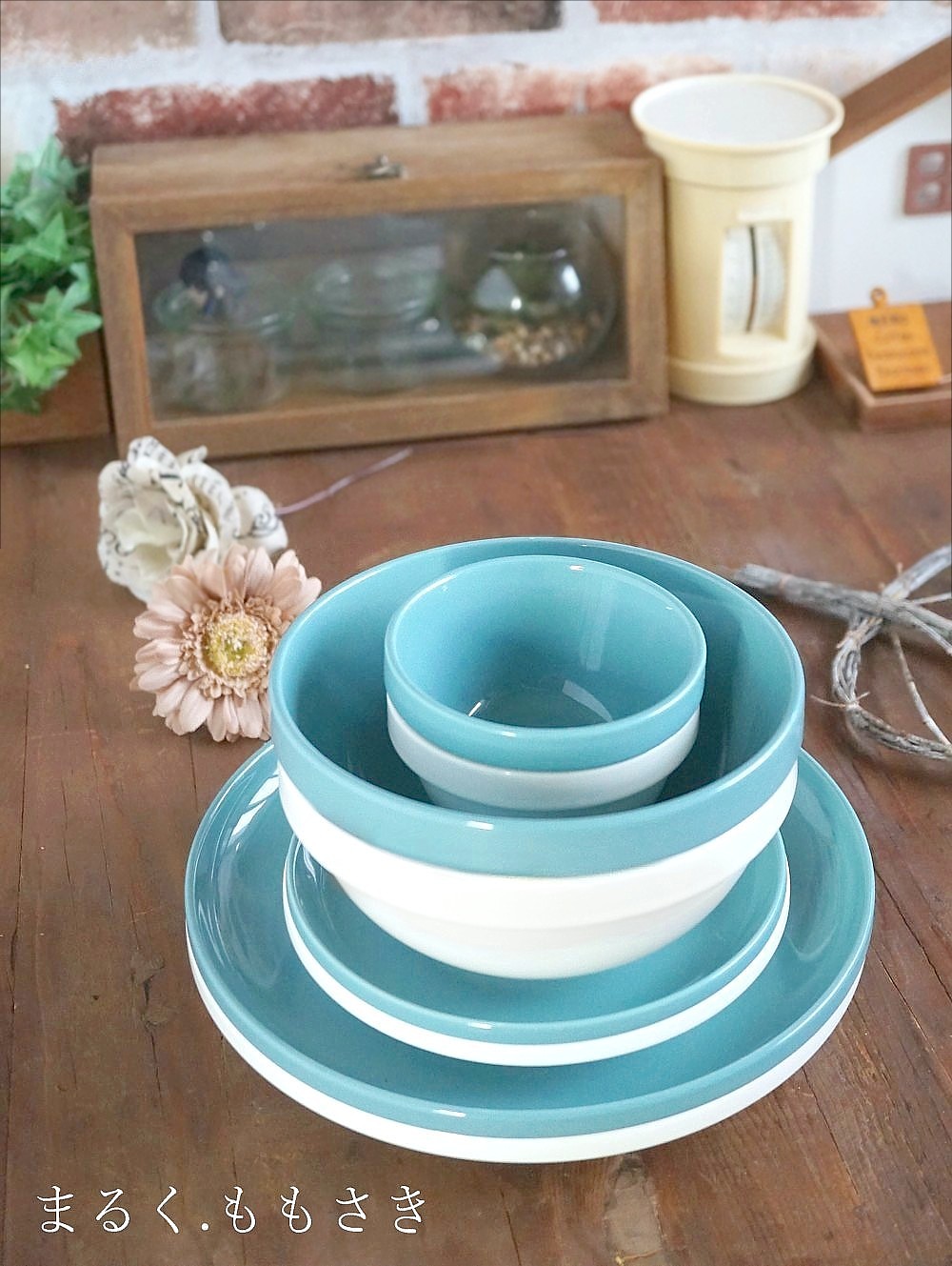 ニトリでスタッキングできる食器を見つけました!お気に入りで持っているイッタラのターコイズブルーに少し似ているなと♪それよりも少し緑よりで淡いブルーです。この色を見るとつい手に取る(笑)
