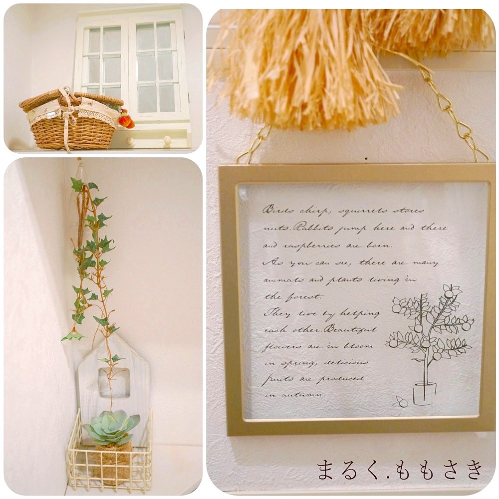 左上の窓の鏡とカゴに苺は15年前と同じ(笑)左下は玄関に飾っていたのをこちらに持ってきました(笑)