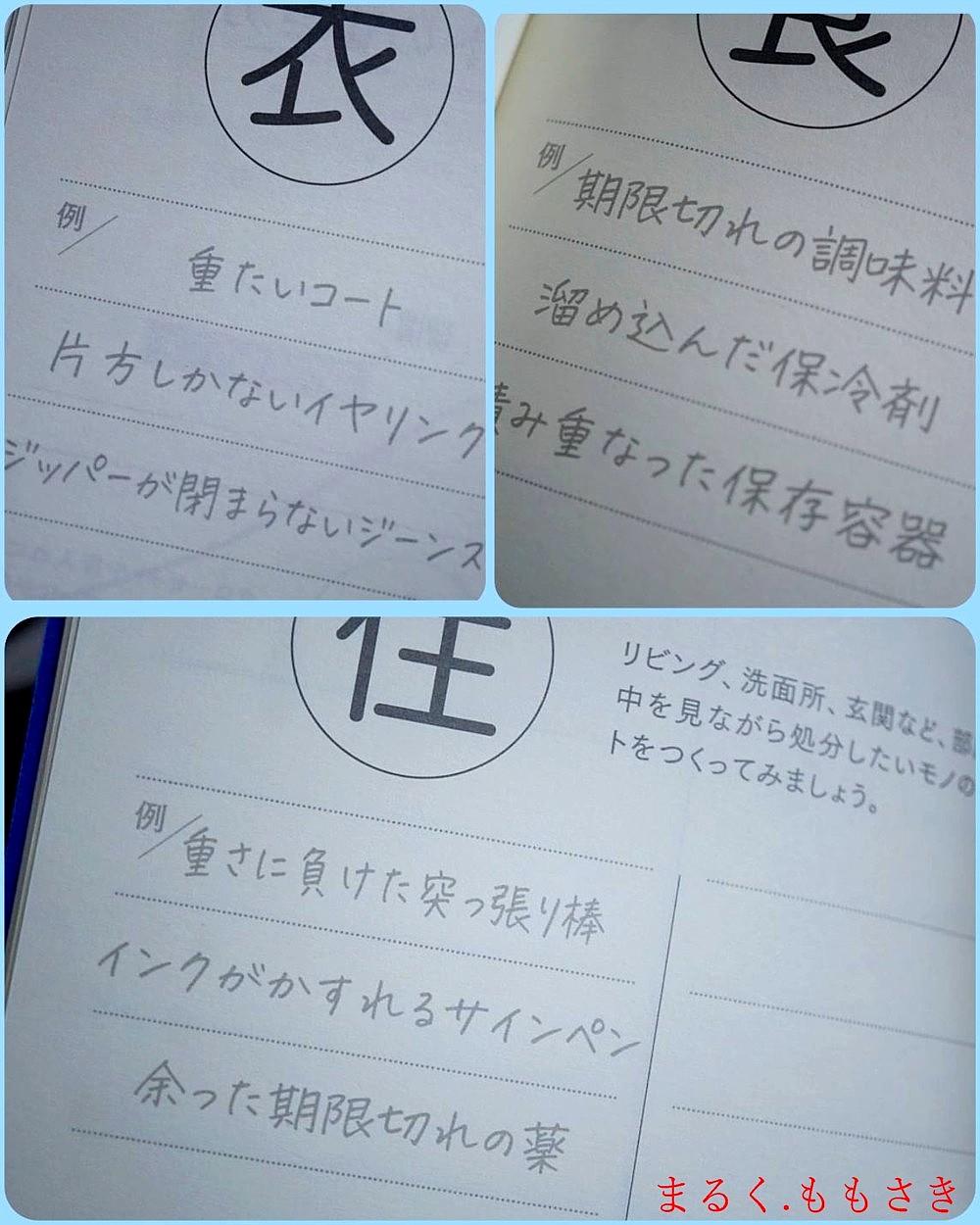 自分で目的を書く欄もあるのですが衣・食・住などに分け断捨離を書き出す場所。