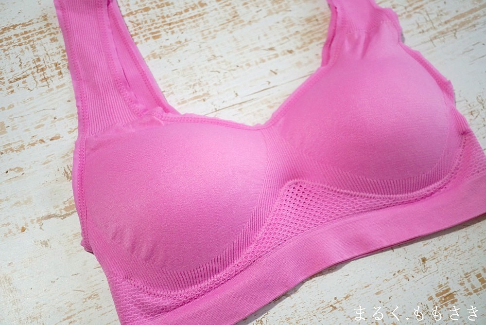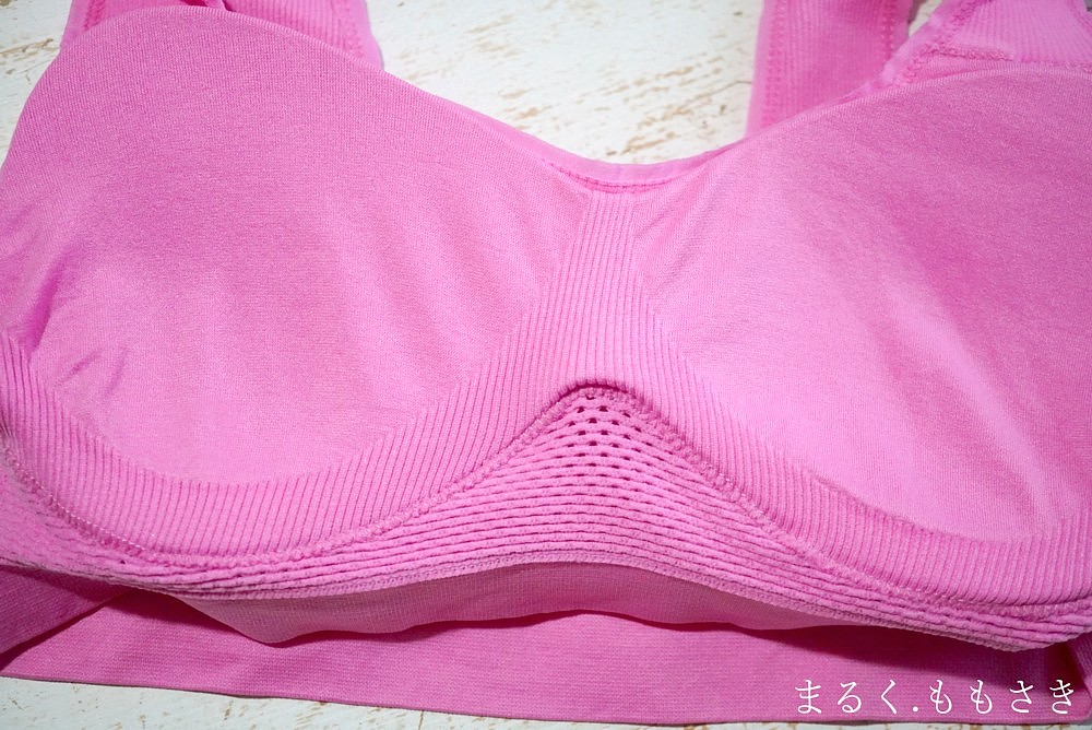 裏返したところ。パッドが入っていて、イラストに書かれているように手の指?のような波打ったものが入っています。ナイトブラにも使えそうな感じですよ!(※自分はナイトブラは経験無く、日中と同じのを着けて寝るのが普通で育った。いらん情報w)