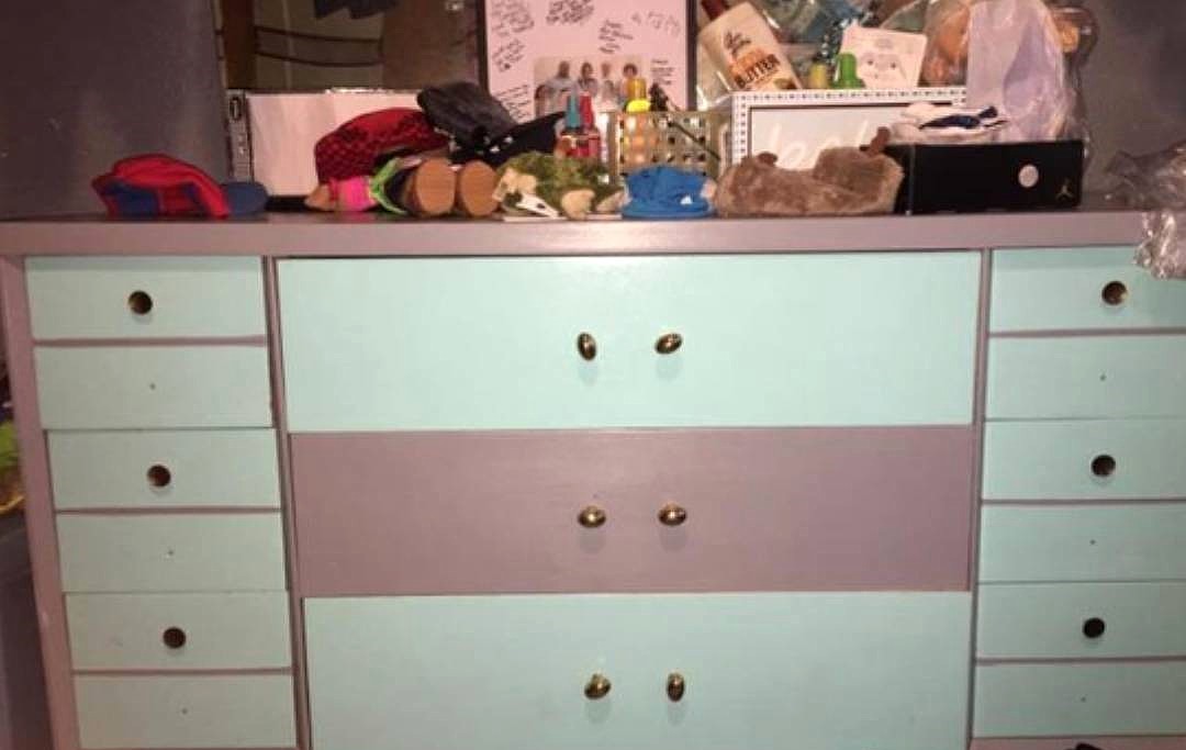 タンスは、淡い緑とくすんだピンク。