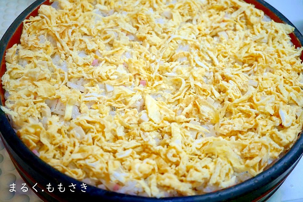上に錦糸卵を乗せる。