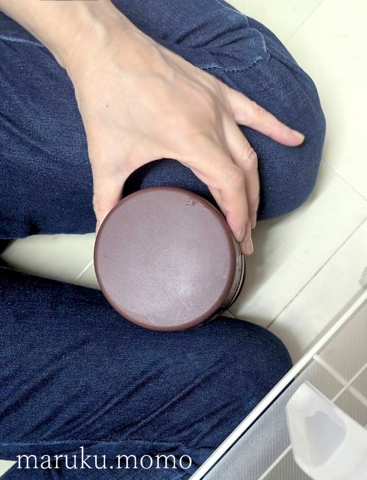 蓋関係も足で挟んで左手で回す