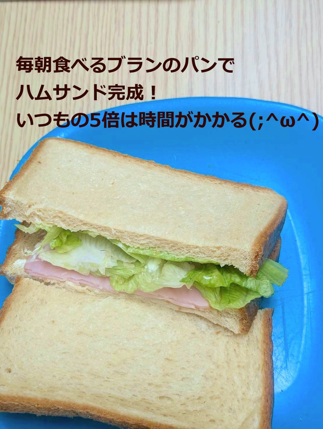 毎朝食べる、ブランの食パンのハムサンドですがバターでさえ塗りにくい💦
