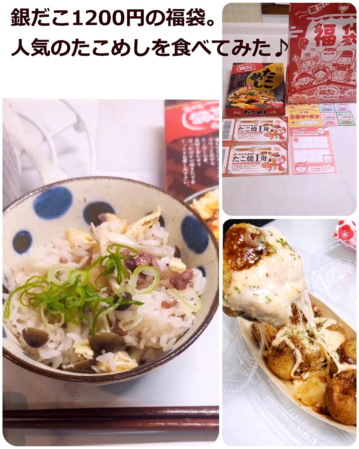 @maruku.momo 銀だこ1200円の福袋2026年 人気のたこめし食べてみた♪ #銀だこ #たこめし #たこ焼き #福袋 #炊き込みご飯 ♬ ご飯にしよっか - 15music