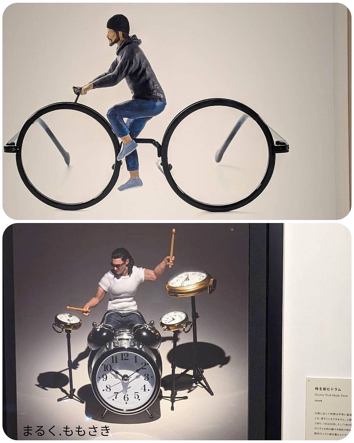 『時間は平等に流れ、時間を止めることができず戻すことも出来ない。人間も24時間1分は60秒、1秒の長さも同じ。常に一定のリズムを刻み続ける時計、それは疲れを知らない絶対的なリズム感を備えたドラムのよう』※この2枚は展示写真を撮影
