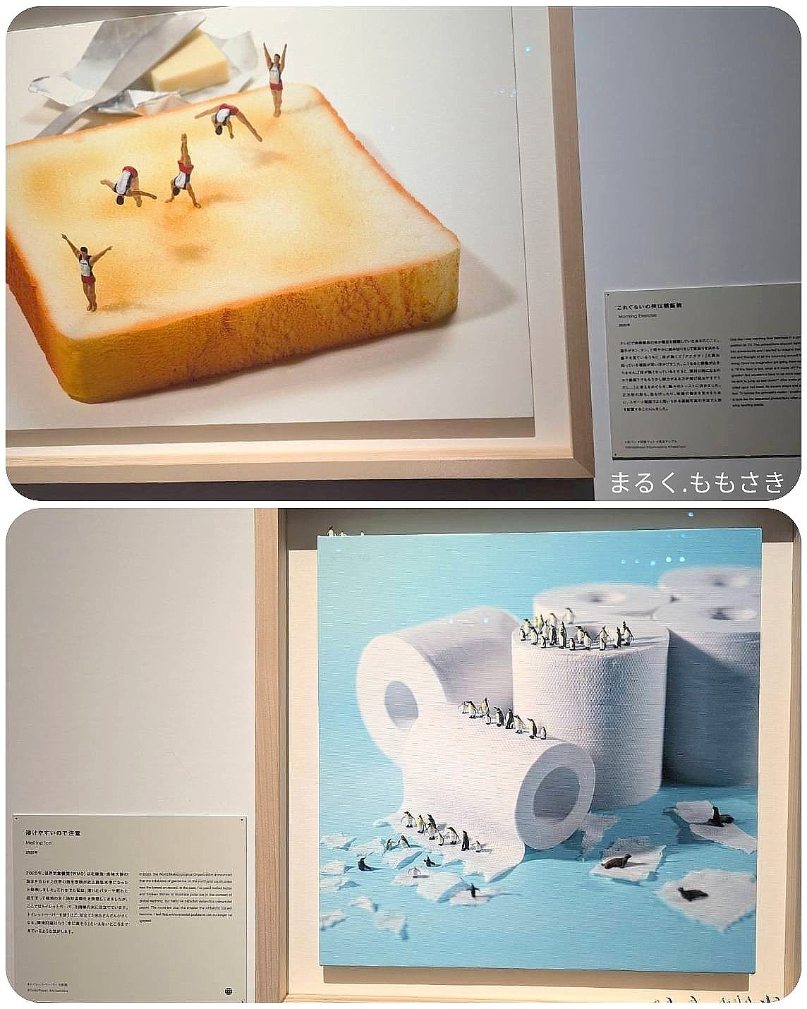 『2023年WHOは北極海・南極海の海水を合わせた世界の海水面積が史上最低になったと発表。トイレットペーパーを氷に見立てドンドン小さくなる環境問題はもう水に流そうと言う所まで来ているのか』※この2枚は展示写真を撮影。