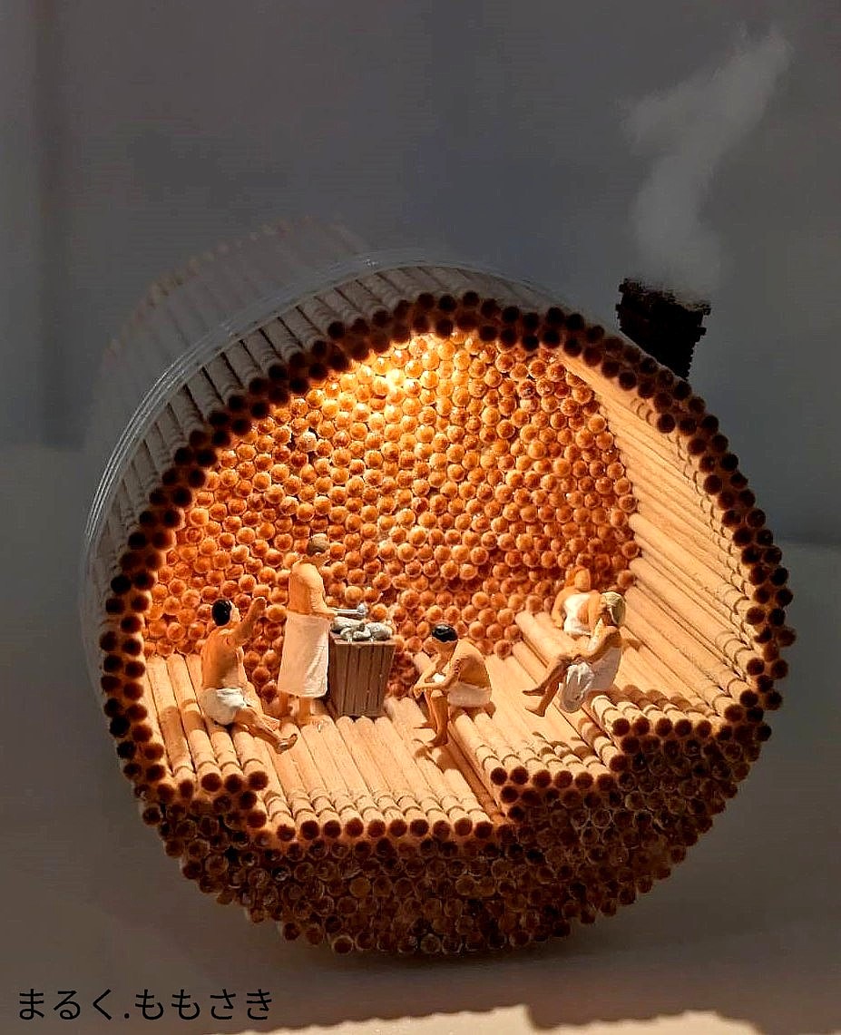 『爪楊枝を並べるとサウナの木のベンチに見える。整う=サウナ後のリラックス状態を表している』