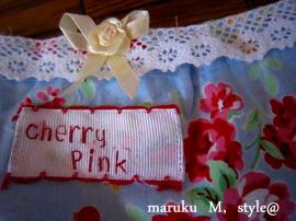 リボンに100円ショップのローマ字ハンコで名付けた? ”cherry pink"の文字を押しました。