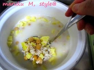 普通に炊いても!たくさん炊いて1袋分をこのスープに使うと便利です。
