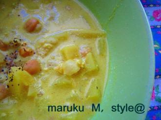 グリーンカレー風。色は黄色。でもね、油入れてないんですよ!
