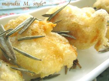 まるでイカの天ぷらのように?鶏ムネ肉が変身していました。