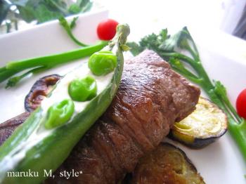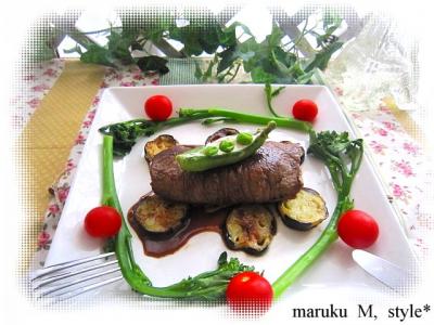後はお茄子の上に焼けたステーキを乗せて適宜に飾りました。