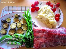 お茄子、スティックブロッコリー、スナップエンドウ、トマト、クリームチーズ・・・・・・・・・・・適宜