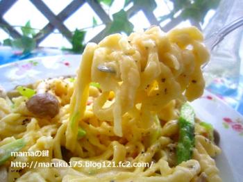 フォークですくうと・・・また・・・手作りならではで麺の表面もボコとしたとこもあるので