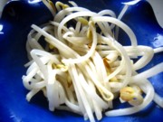 まずは、お素麺とお茄子の味噌汁に小松菜のお浸し、もやしの酢炒め。