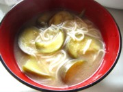 このお素麺のお味噌汁は子供の頃に良く飲んだ懐かしい味で思わず、子供に戻れました。