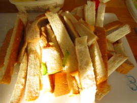このパンミミをレンジで2分かけてフライパンでバターと砂糖とシナモンでラスクを作ります!