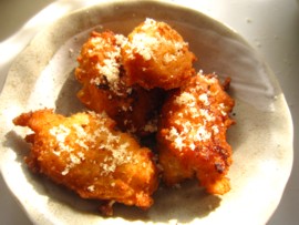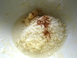 いつもするように、カツをして残るパン粉とか衣を合わせて砂糖とシナモンを入れて