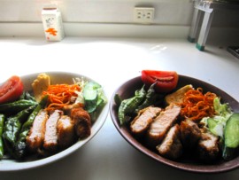 そして同じおかずで、お皿に入れただけですが。父とプールに行かない長男のお昼です!
