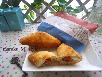 スモークサーモンとクリームチーズの方もカレーとチーズの方もどちらも好みのお味です[絵文字:i-176]