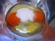①卵の中にパルスイートの砂糖を入れてよく泡立てます。