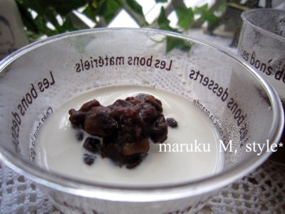 ゼリーの上には15分ほどで炊いた、いつもの餡子と生クリームをかけて頂きます。