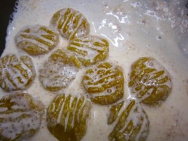 4、お鍋に☆を軽く温めてソースを作り、3の生地を入れて絡めます。