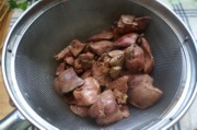 ①レバーを適宜にカットして塩を入れたお湯でサッと臭みを取ります。