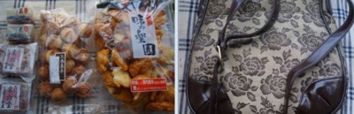 私からはそのお家ご飯に?カバンと母の大好きな おかきなど~