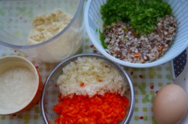 ②生椎茸・ピーマン・人参は細かくカット。フープロ使いました。
