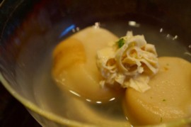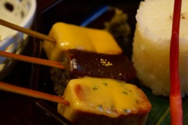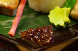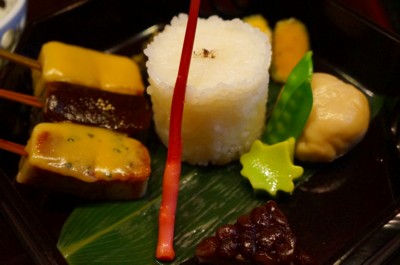 奥の生麩は周りが山椒味ですごく美味しい!竹をイメージしています。