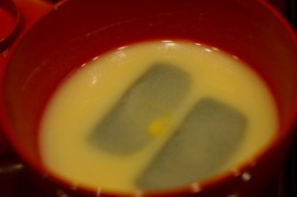ヨモギ麩の白味噌し立て。白味噌が京都は合いますね!
