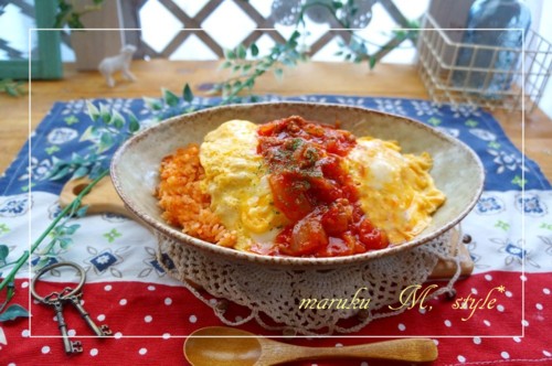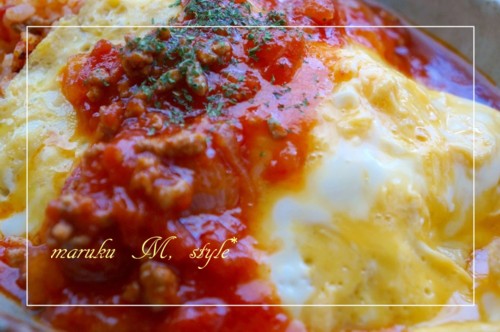 そして卵の上からもトマトソースをかけると~~お店みたいに見えるかな?^^
