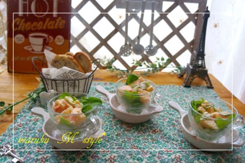 100均のミニグラスに盛ればオードブルにもいけます。