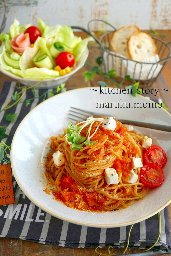 余ったトマトは『冷凍トマト』が便利♪自家製トマトソースのパスタ