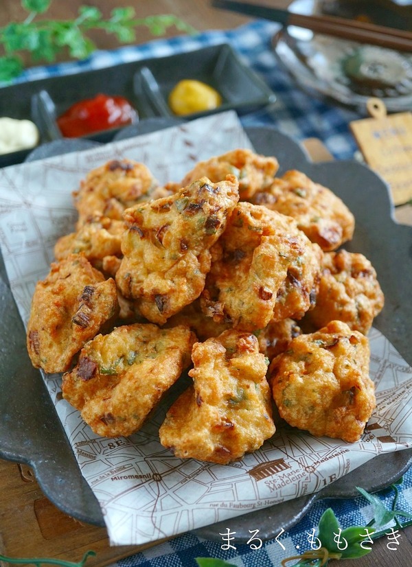 玉ねぎがアクセント♪ふわふわはんぺんと豆腐のお焼き&火曜市